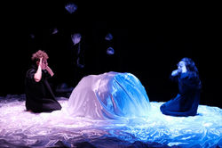 Aglaé et Frangipane nous invitent à un voyage au coeur de leurs éclats de joie et de colère, de leurs petites frayeurs, de leurs chagrins... Avec des yeux ronds comme des soucoupes ou en montrant les dents, elles jouent avec les tissus qui peuplent et dessinent l’espace. La scénographie textile et le dispositif sonore se déploient autour des enfants, pour une expérience sensorielle et immersive.
